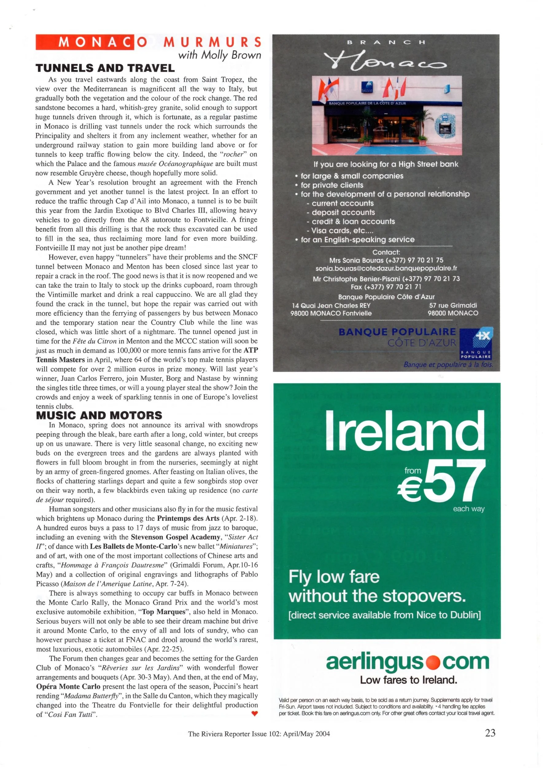As you travel eastwards along the coast from Saint Tropez, the view over the Mediterranean is magnificent all the way to Italy, but gradually both the vegetation and the colour of the rock change. The red sandstone becomes a hard, whitish-grey granite, solid enough to support huge tunnels driven through it, which is fortunate, as a regular pastime in Monaco is drilling vast tunnels under the rock which surrounds the Principality and shelters it from any inclement weather, whether for an underground railway station to gain more building land above or for tunnels to keep traffic flowing below the city. Indeed …