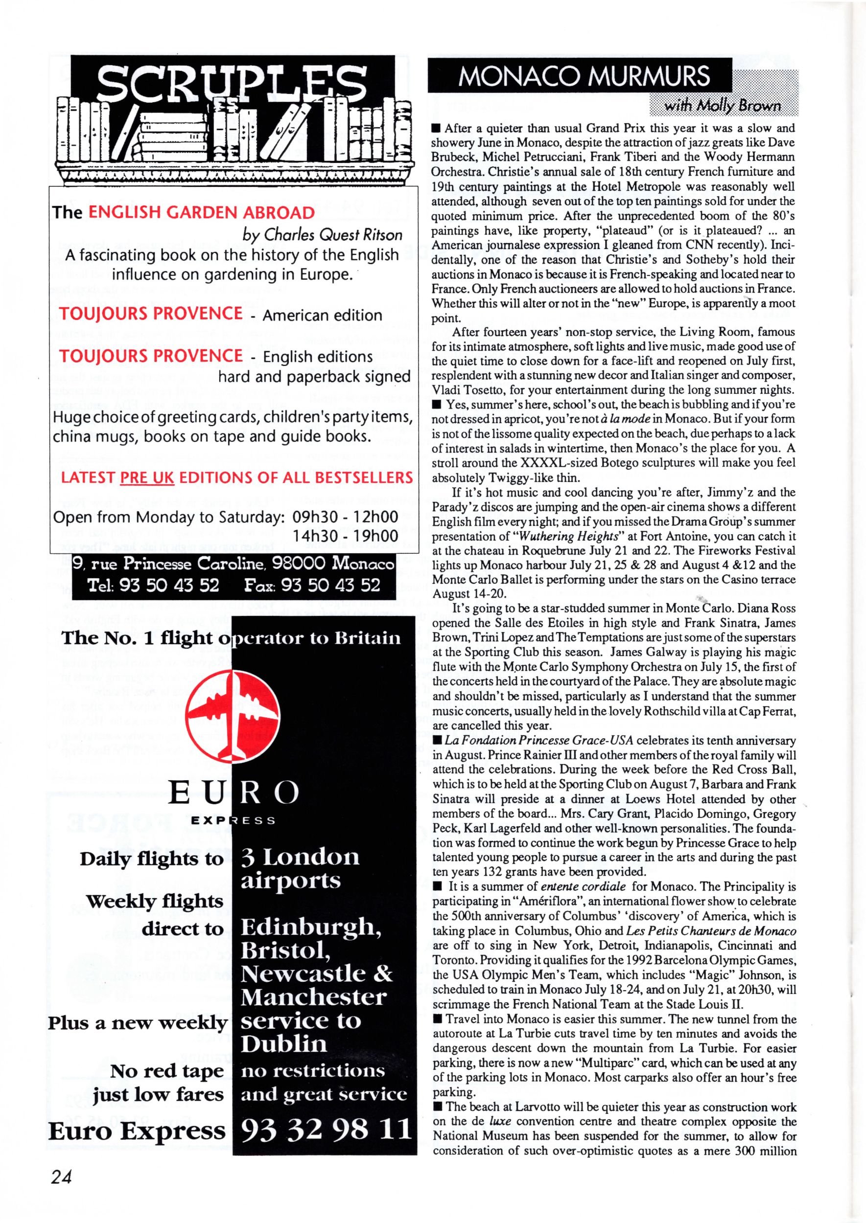 August / September 1992 Jan 25 Written By C Brown After a quieter than usual Grand Prix this year it was a slow and showery June in Monaco, despite the attraction of jazz greats like Dave Brubeck, Michel Petrucciani, Frank Tiberi and the Woody Hermann Orchestra. … C Brown