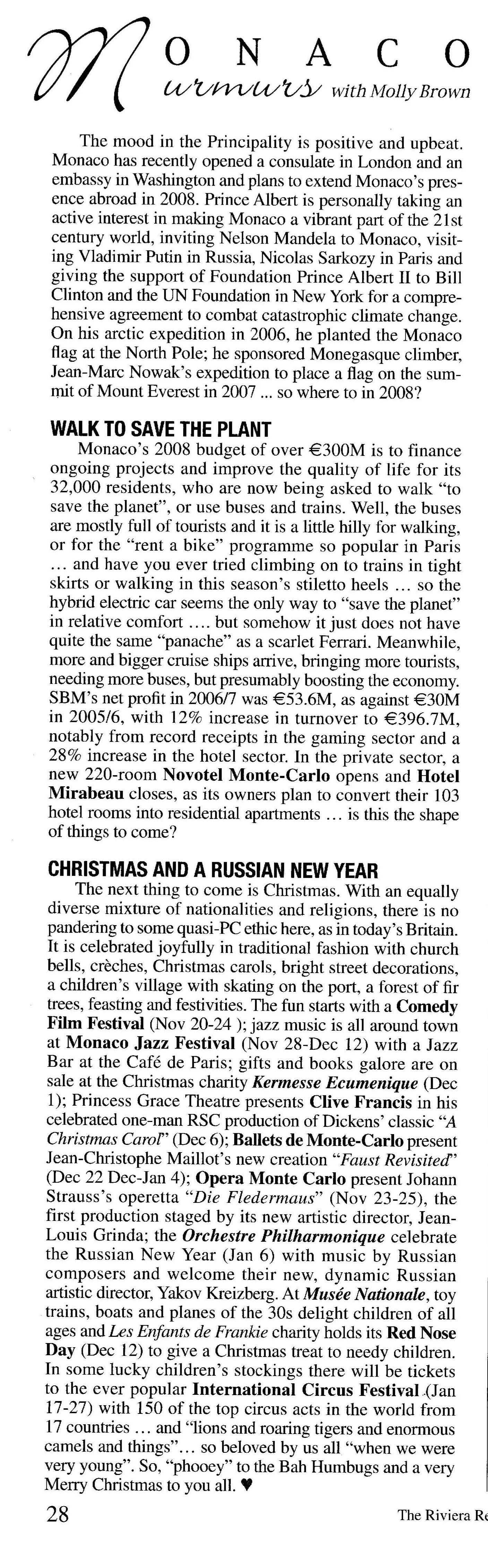 December 2007 / Jan 2008 Apr 27 Written By C Brown The mood in the Principality is positive and upbeat. Monaco has recently opened a consulate in London and an embassy in Washington and plans to extend Monaco’s presence abroad in 2008. … C Brown