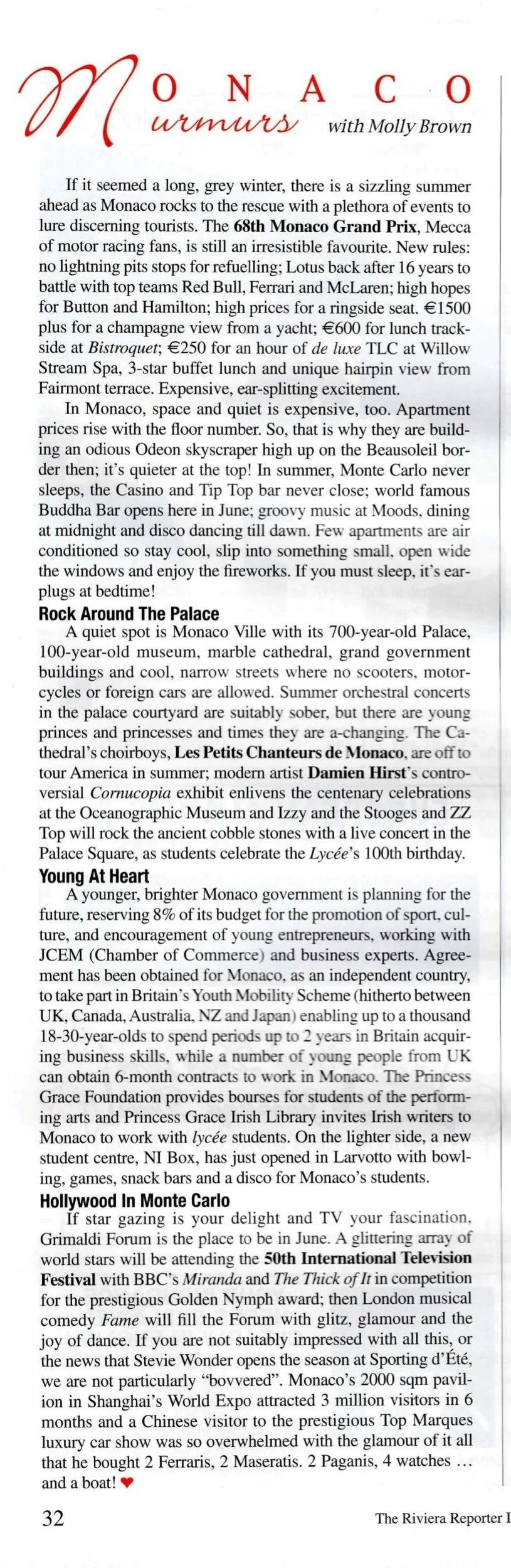If it seemed a long, grey winter, there is a sizzling summer ahead as Monaco rocks to the rescue with a plethora of events to lure discerning tourists. The 68th Monaco Grand Prix, Mecca of racing fans, is still an irresistible favourite.