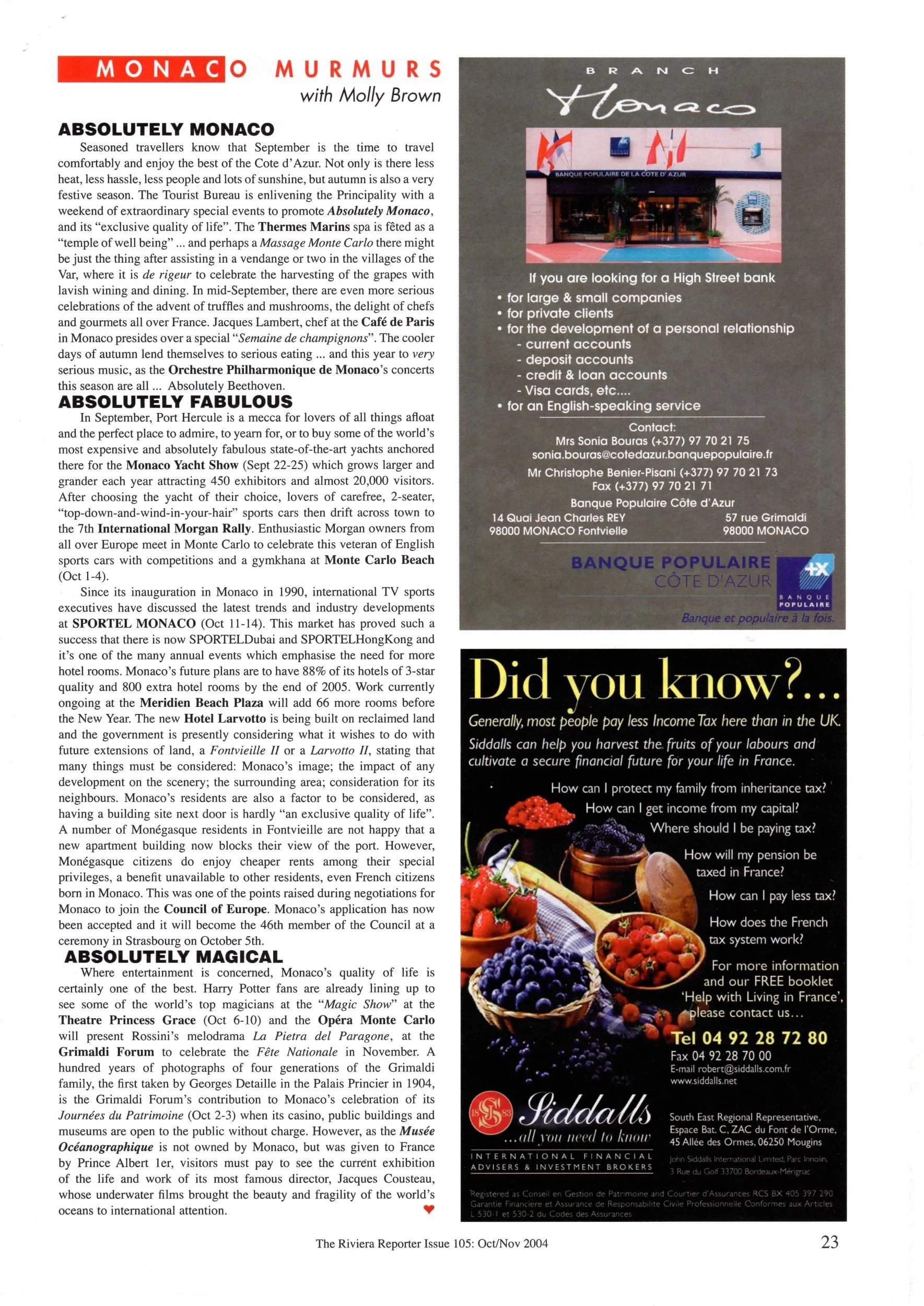 Seasoned travellers know that September is the time to travel comfortably and enjoy the best of the Côte d’Azur. Not only is there less heat, less hassle, less people and lots of sunshine, but autumn is also a very festive season. The Tourist Bureau is enlivening the Principality with a weekend of extraordinary special events to promote Absolutely Monaco, and its “exclusive quality of life”. …